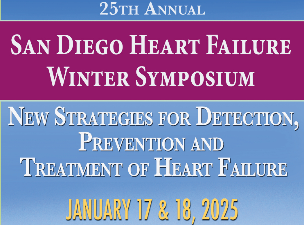 - The 25th Annual San Diego Heart Failure Winter Symposium – New Strategies for Detection, Prevention and Treatment of Heart Failure. This year’s meeting will provide a comprehensive overview of strategies for detecting, preventing and treating heart failure. The talks, panel discussions and case presentations will focus on best practices and recent guideline recommendations as interpreted through the eyes of a renowned faculty. Throughout the two days, the faculty will provide expert insight and personal experience as they discuss the full range of management options that are available for patients throughout the spectrum of heart failure, ranging from Stage A (asymptomatic patients with risk factors) all the way to Stage D heart failure (highly symptomatic end-stage patients). New approaches for diagnosing heart failure and identifying specific groups of patients that require special management considerations (such as amyloid, hypertrophic and genetic cardiomyopathies) will be highlighted, rationale for guideline directed medical therapies (GDMTs) will be reviewed and strategies for successful implementation will be presented.